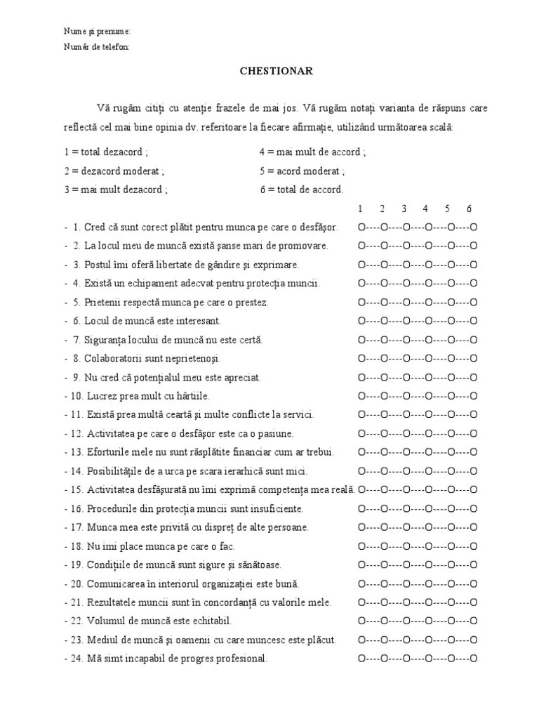 Chestionar De Evaluare A Motivatiei Angajatilor : Chestionar Motivare Pdf